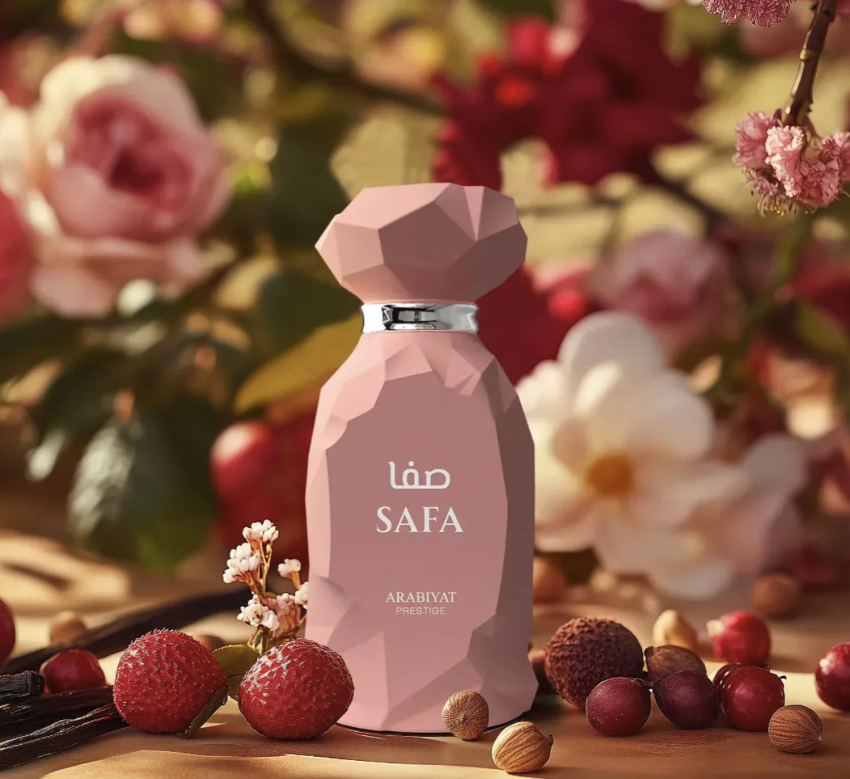 Descubre Safa de Arabiyat Prestige, una fragancia femenina que combina la frescura frutal con la elegancia floral y la calidez ambarada. Inspirada en la sofisticación de Delina Exclusif de Parfums de Marly, Safa ofrece una experiencia olfativa envolvente y duradera.